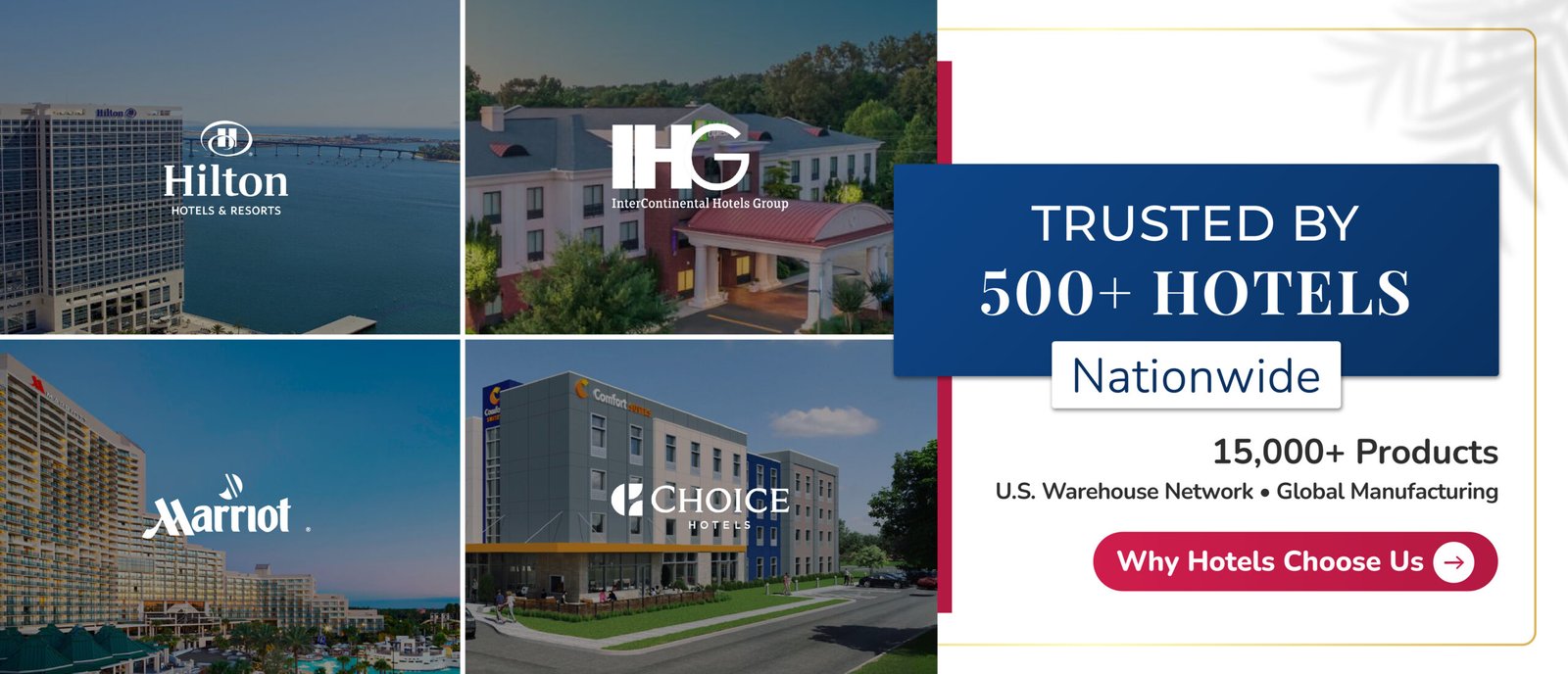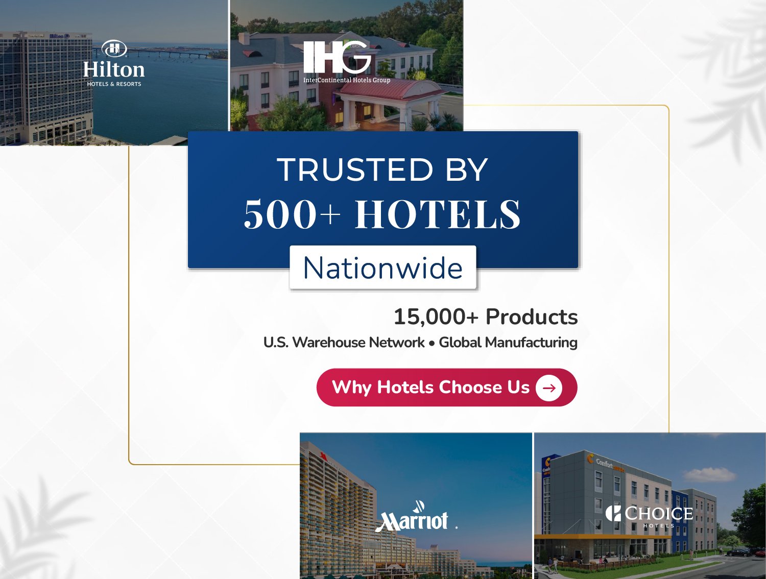 Want to have a direct conversation? Contact a hotel supplier USA representative via phone, email, or live chat. Our responsive hospitality customer service team is built to provide clear answers, quick quotes, and expert advice on bulk purchases.