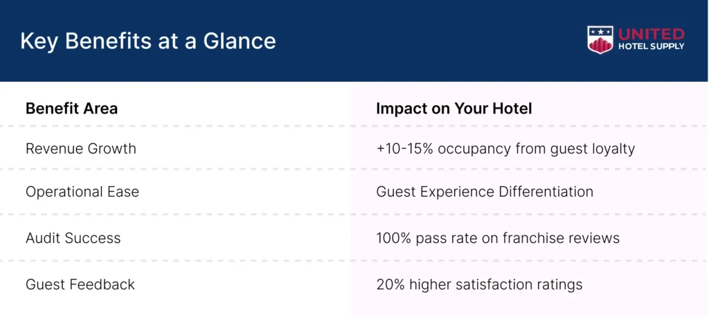 Franchise and branded hotel operators that put brand compliant furniture first set their hotels up for long-term success. It keeps guests coming back, makes it easier to follow the rules, and protects investments as the needs of the sector change. This foundation becomes increasingly more important as chains raise their standards. People who have made the switch typically think about how it turned problems into competitive advantages. For bulk hotel furniture orders, hotel owners can directly contact United Hotel Supply expert team for product guidance and material consultation. Call us now at +1 352-644-9600 or email info@unitedhotelsupply.com for immediate assistance.