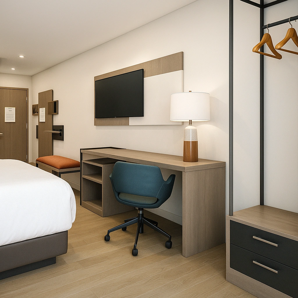 Seamlessly shifting from stylish seating to a restful bed, the sleeper sofa offers flexible comfort suited to dynamic guest needs.