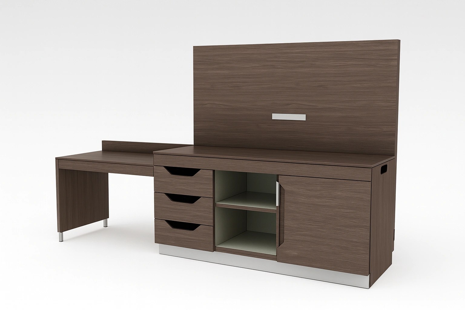 Designed to provide a clear, organized workspace, the writing desk offers ample room for laptops and documents while fitting effortlessly into the suite’s overall layout.