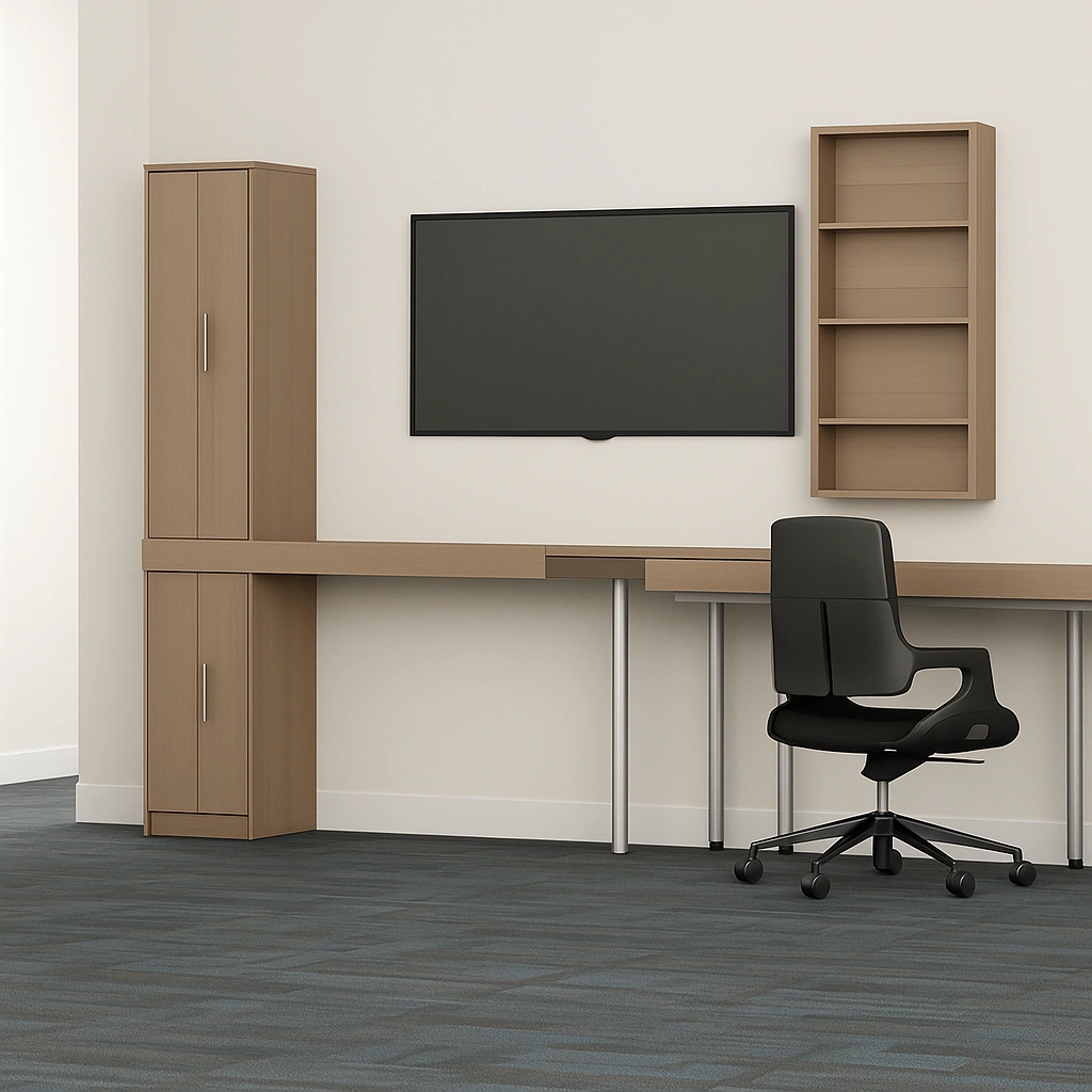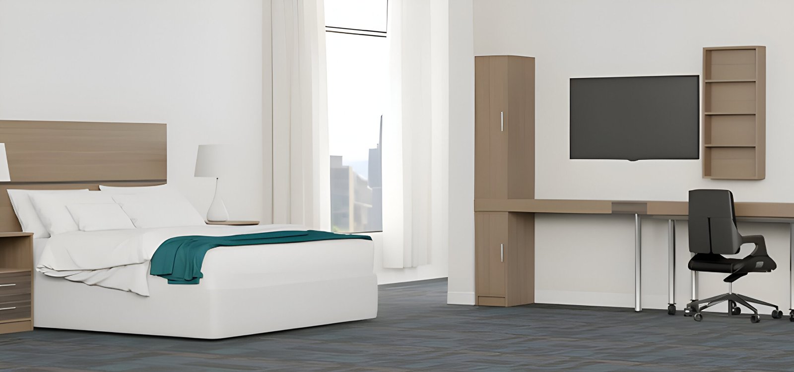 Spacious and user-friendly, the wardrobe offers plenty of room to organize clothing and personal items. Its design blends clean lines with resilient finishes to withstand everyday hotel demands and guest turnover.