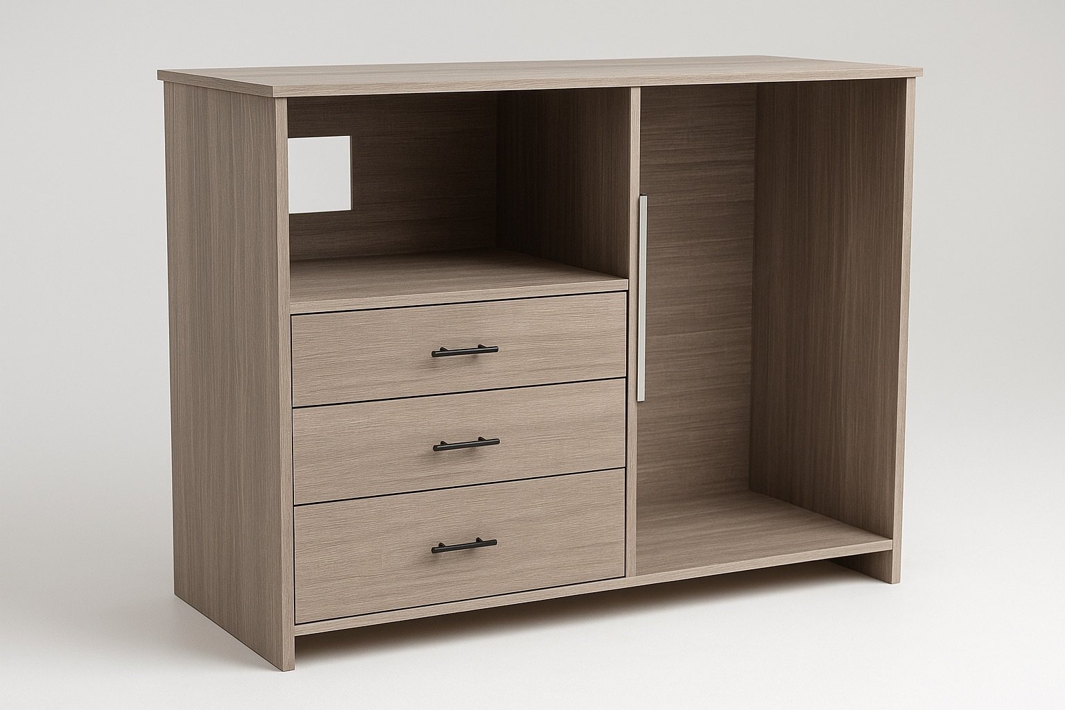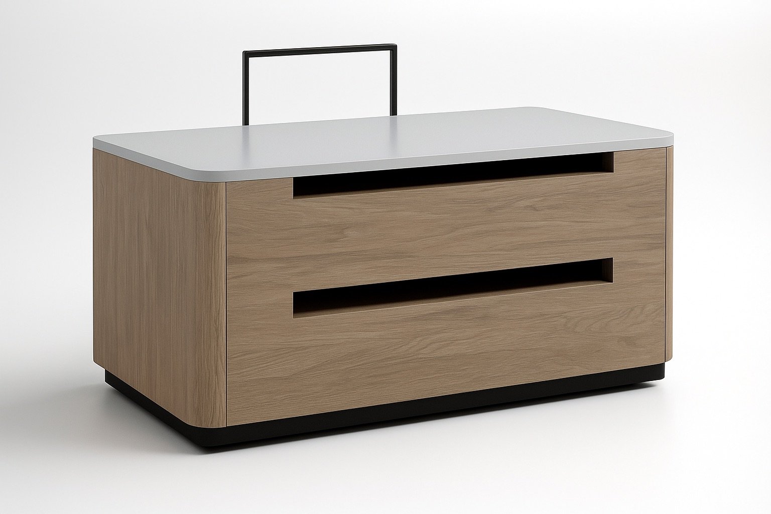 Crafted for generous living, the king nightstand balances broad storage with sculptural form, becoming a functional focal point beside the bed.