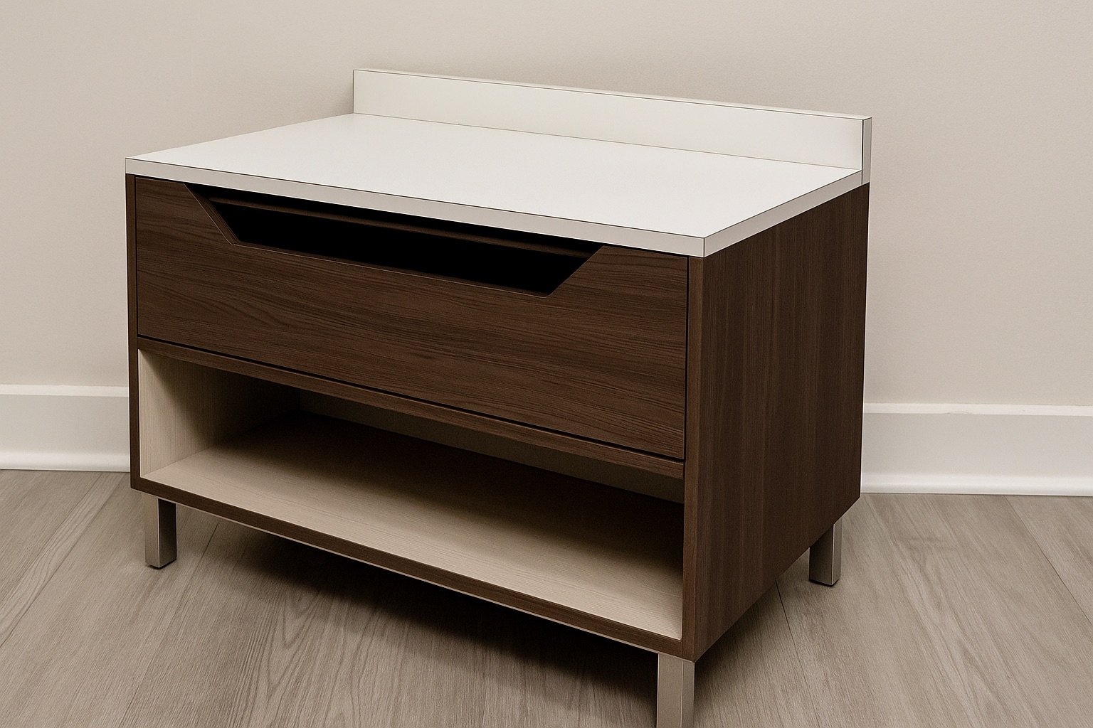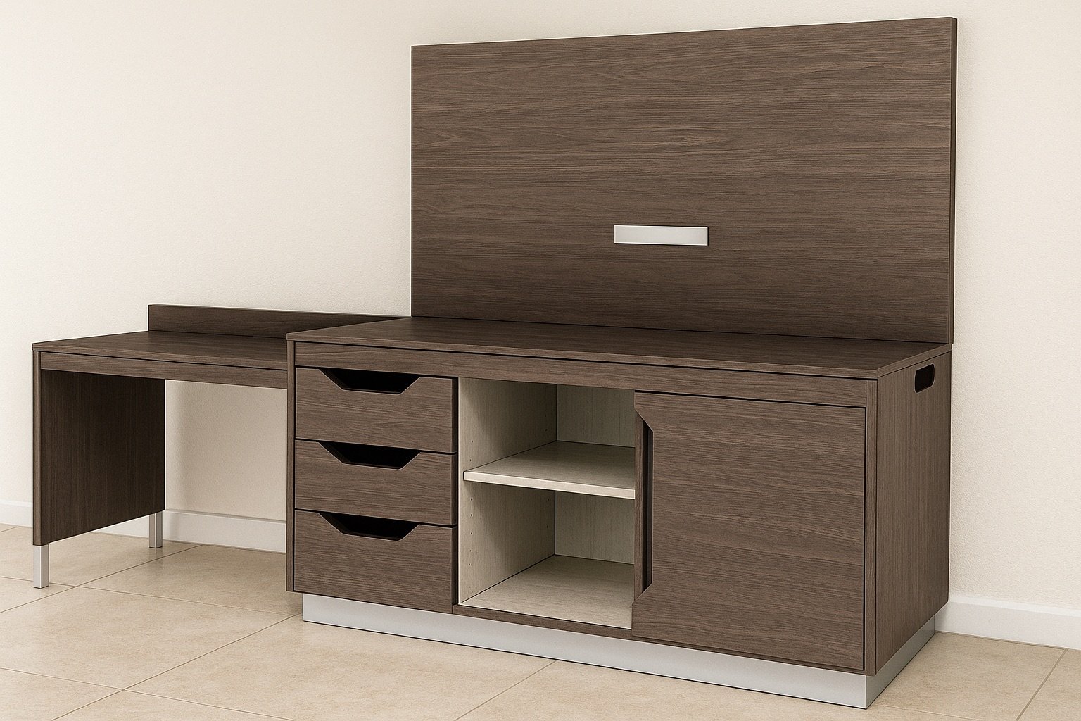 Optimized for efficiency and poise, the streamlined unit offers neat storage that respects spatial harmony and hospitality rigor.
