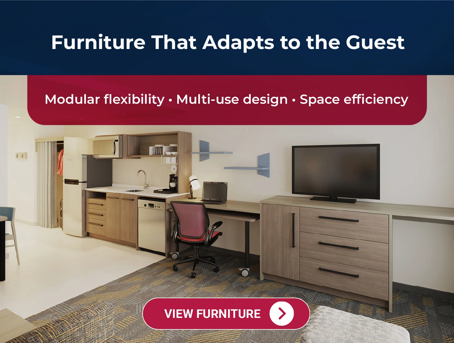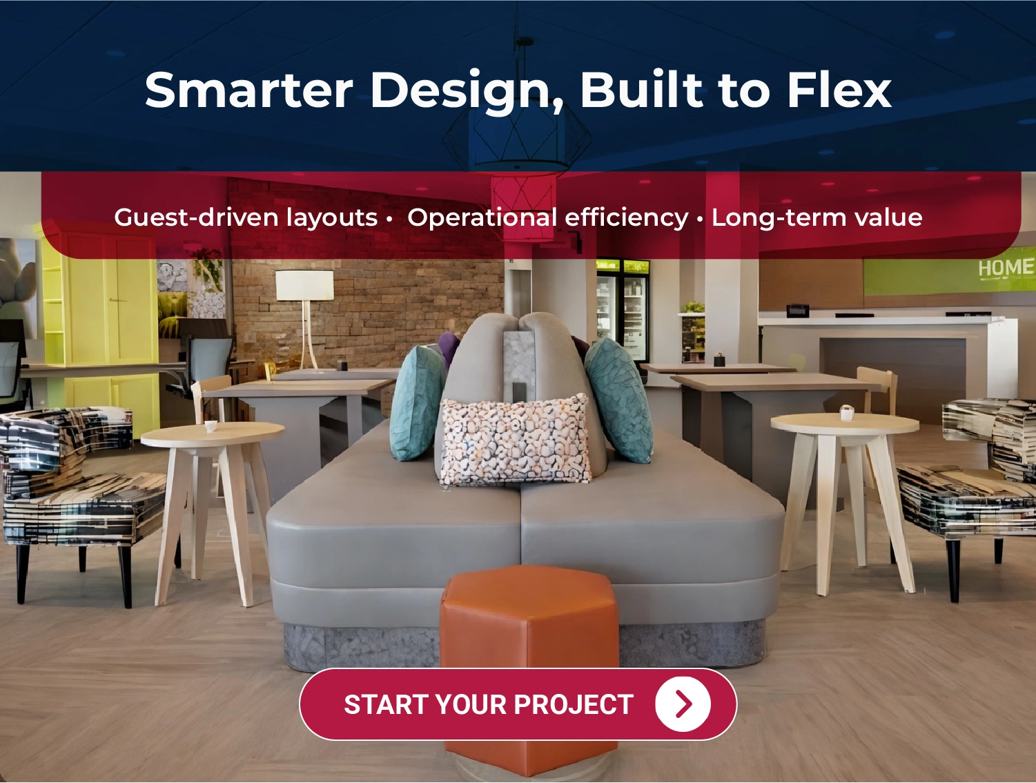 United Hotel Supply works alongside Home2 Suites by Hilton, a brand distinguished by flexible room designs and amenities curated around guest choice. Our furniture solutions reinforce the brand’s dedication to smart, adaptable accommodations. With leadership from experienced project managers and design engineers, we coordinate the full manufacturing journey, ensuring a seamless progression from concept development to installation, delivery, and on-site service.