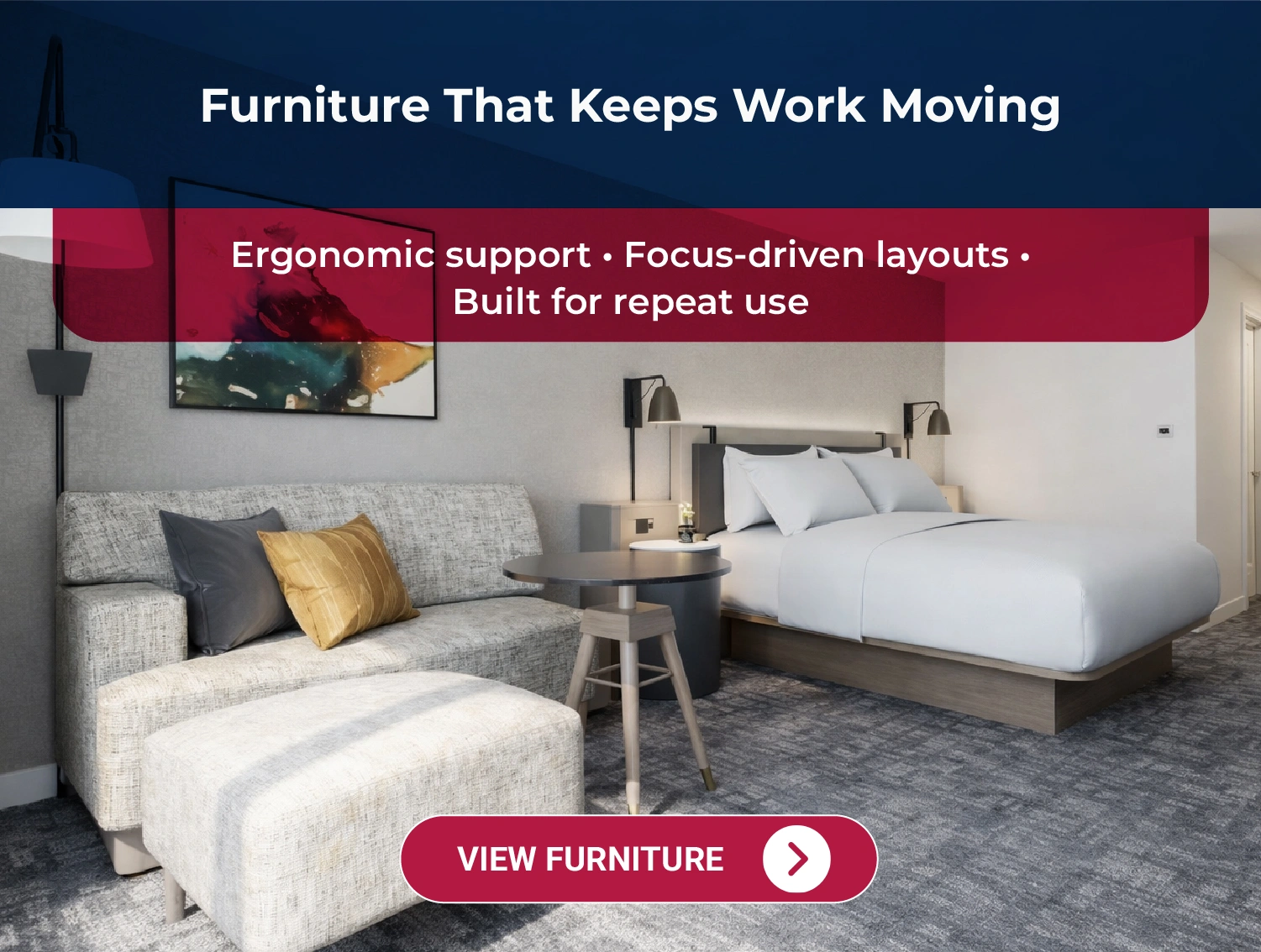 United Hotel Supply collaborates with Crowne Plaza Hotels, whose mission centers on redefining business travel with smarter technology, increased flexibility, and stronger connectivity. As a global upscale brand, Crowne Plaza provides refined accommodations, work-focused spaces, and fresh dining options designed to keep guests energized, productive, and well-rested. United by a shared commitment to better business travel, we support the brand with furniture solutions designed specifically to enhance the guest experience.
