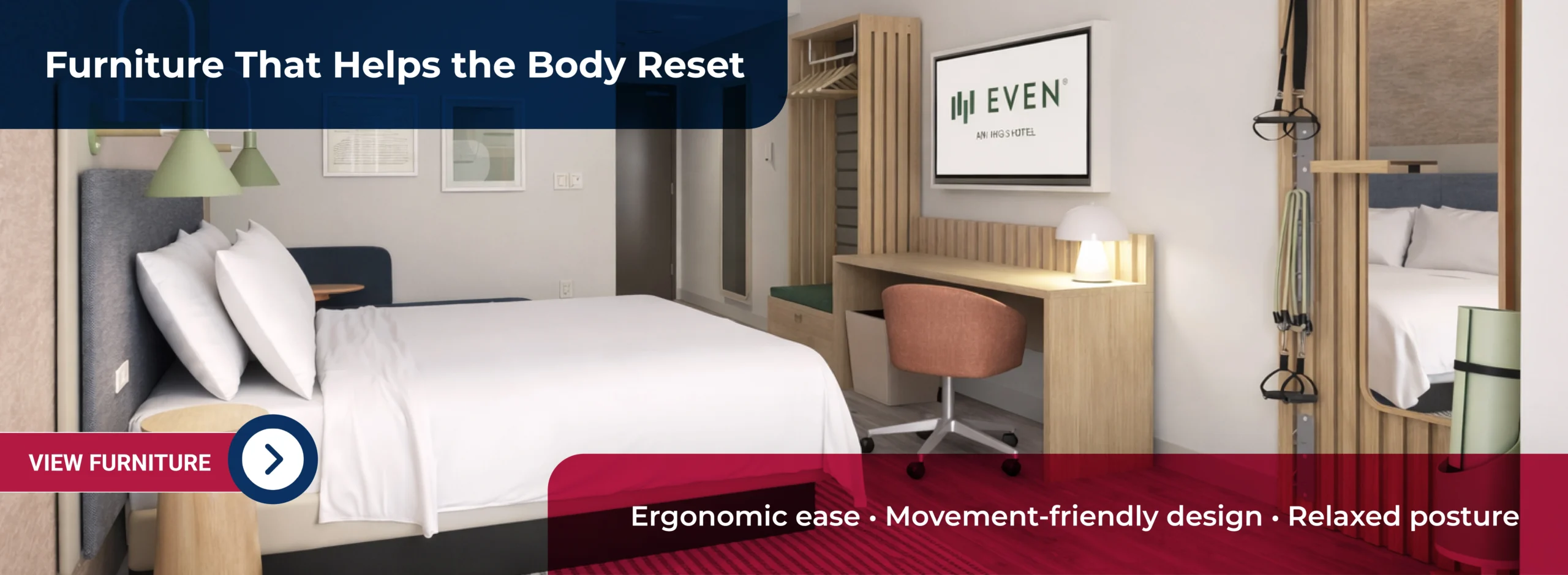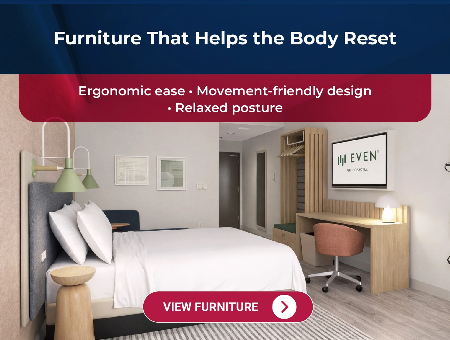 United Hotel Supply partners with EVEN Hotels, a wellness-focused brand centered on helping guests recharge and feel their best. We work collaboratively to deliver furniture solutions that elevate comfort and promote well-being. Led by skilled project managers and design professionals, we manage the full process from concept to installation, ensuring EVEN’s design intent is consistently and thoughtfully executed.