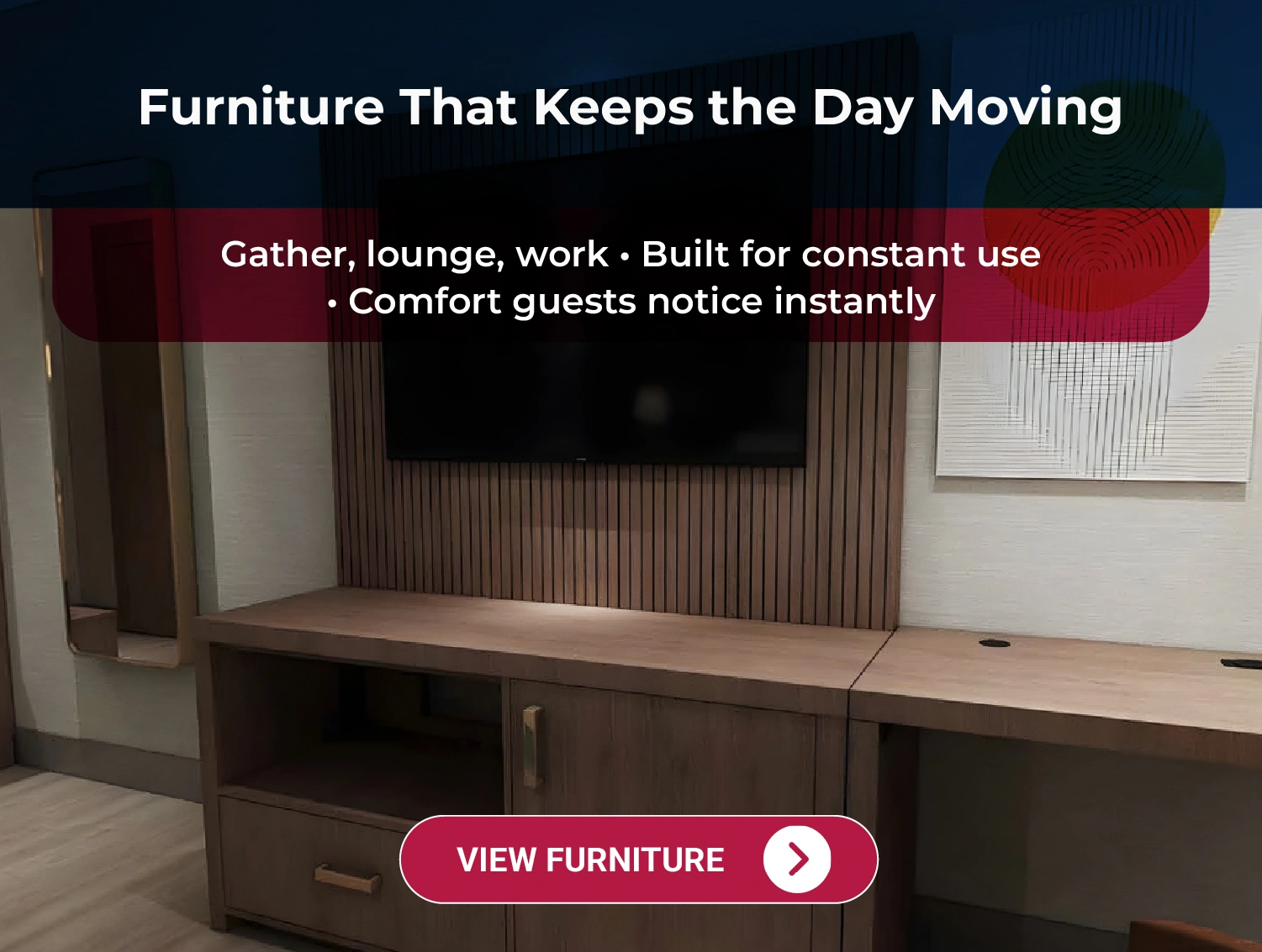 United Hotel Supply is thrilled to partner with Holiday Inn, a brand known for reliability, comfort, quality, and outstanding value. Our furniture solutions are carefully crafted to elevate the guest experience. Whether traveling for business or leisure, Holiday Inn furnishings create welcoming environments that encourage meaningful interactions and memorable stays, reflecting the brand’s dedication to building relationships that truly matter.