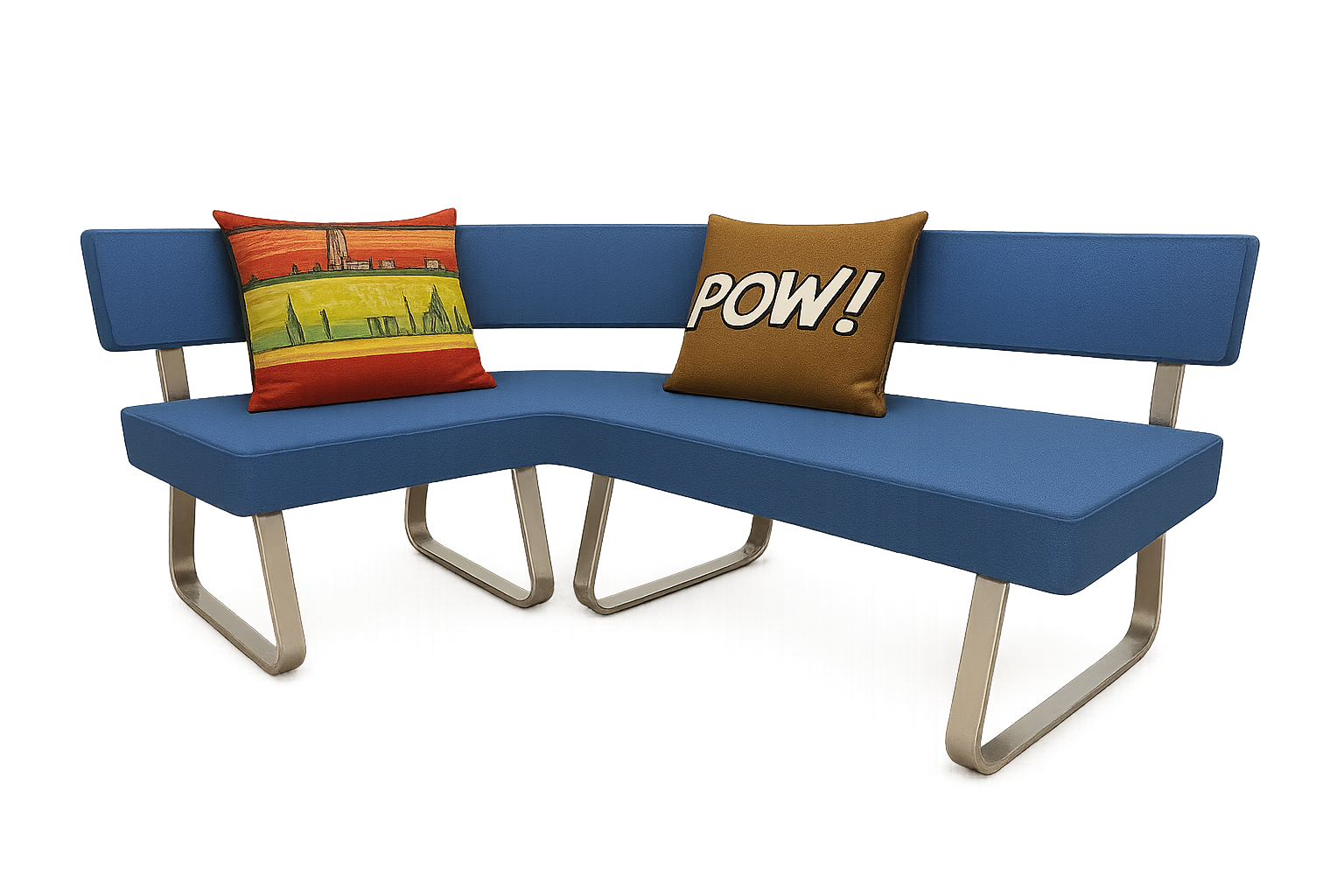 The luggage bench combines robust construction with a sleek silhouette, offering guests a practical and welcoming spot to settle in.