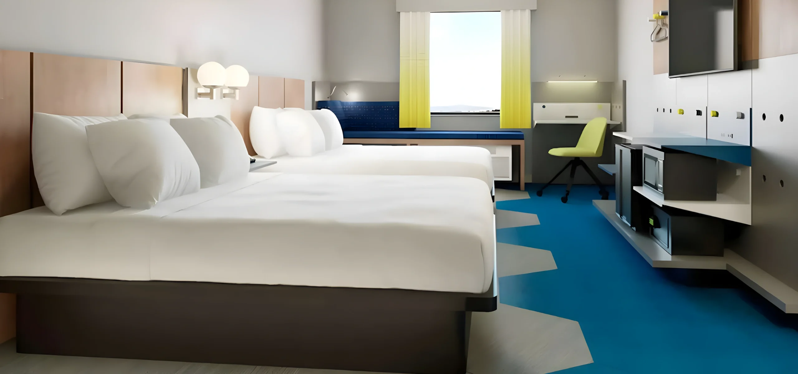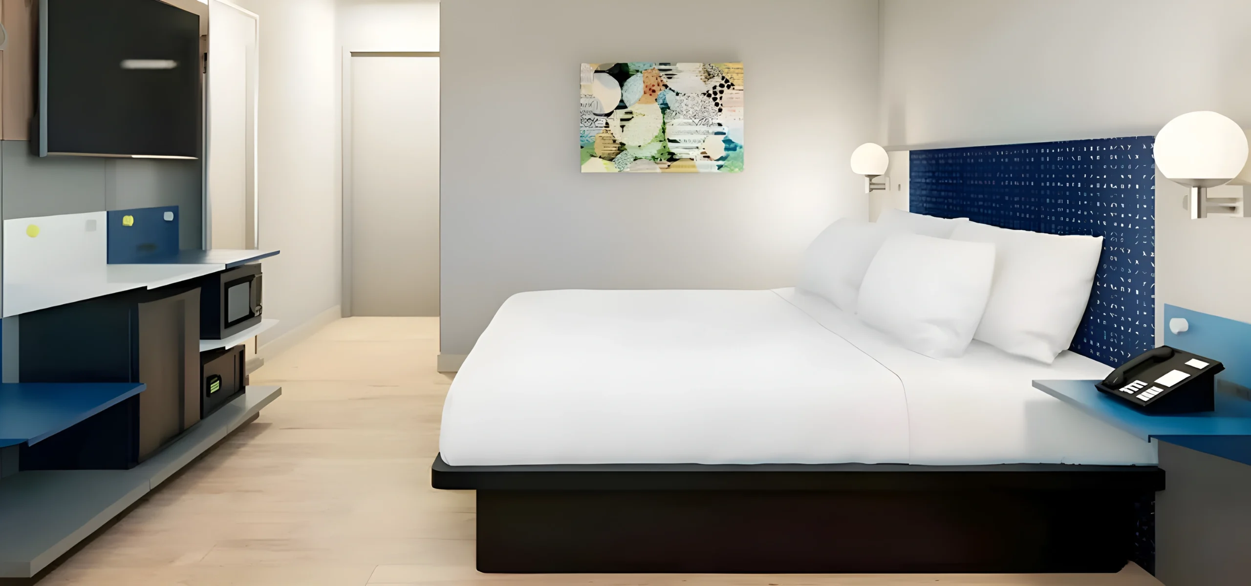 A sculptural statement of layered fabric and clean geometry, the king headboard grounds the room in textured comfort and quiet sophistication.