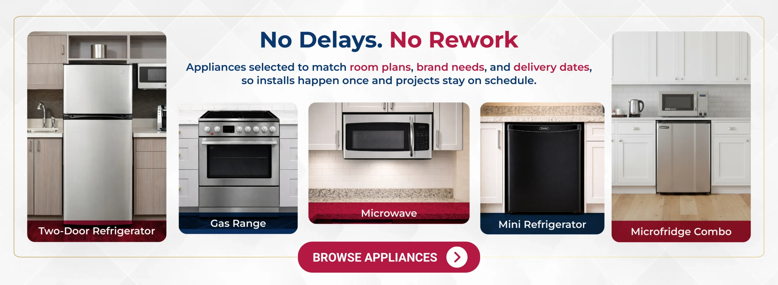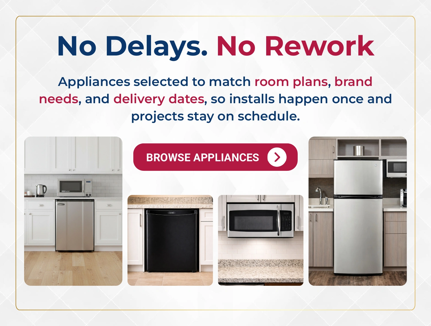 Practical appliance selections for Choice hotels, helping owners manage budgets while meeting brand and guest expectations consistently nationwide.