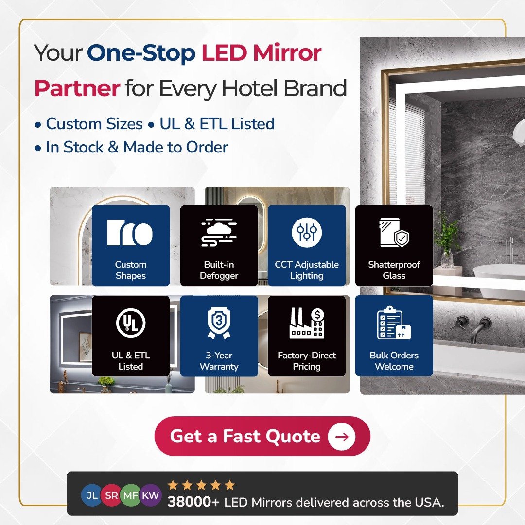 The bathroom mirror is the most used fixture in a hotel guestroom — guests interact with it multiple times per day, in multiple lighting conditions, and their experience of it directly influences how they perceive room quality. A dim, poorly lit, or fogged mirror generates complaints.
