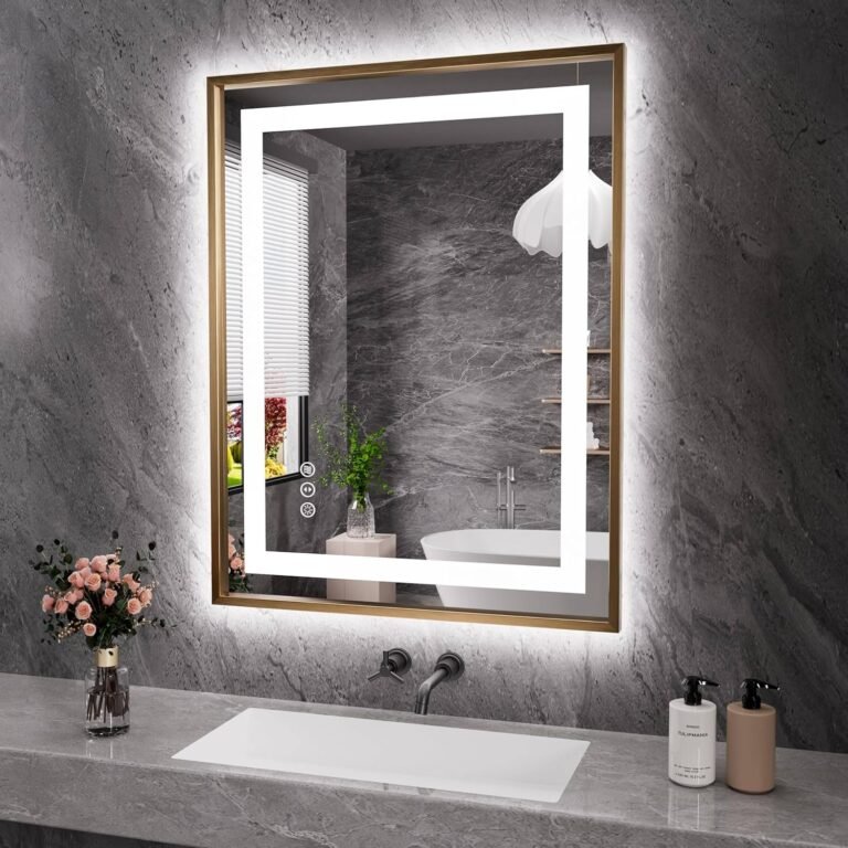 United Gold Metal Frame Four-Sided LED Bathroom Mirror – Front & Back Lit, Dimmable, Inbuilt Defogger, 3-in-1 CCT Lighting – 24″W × 32″H