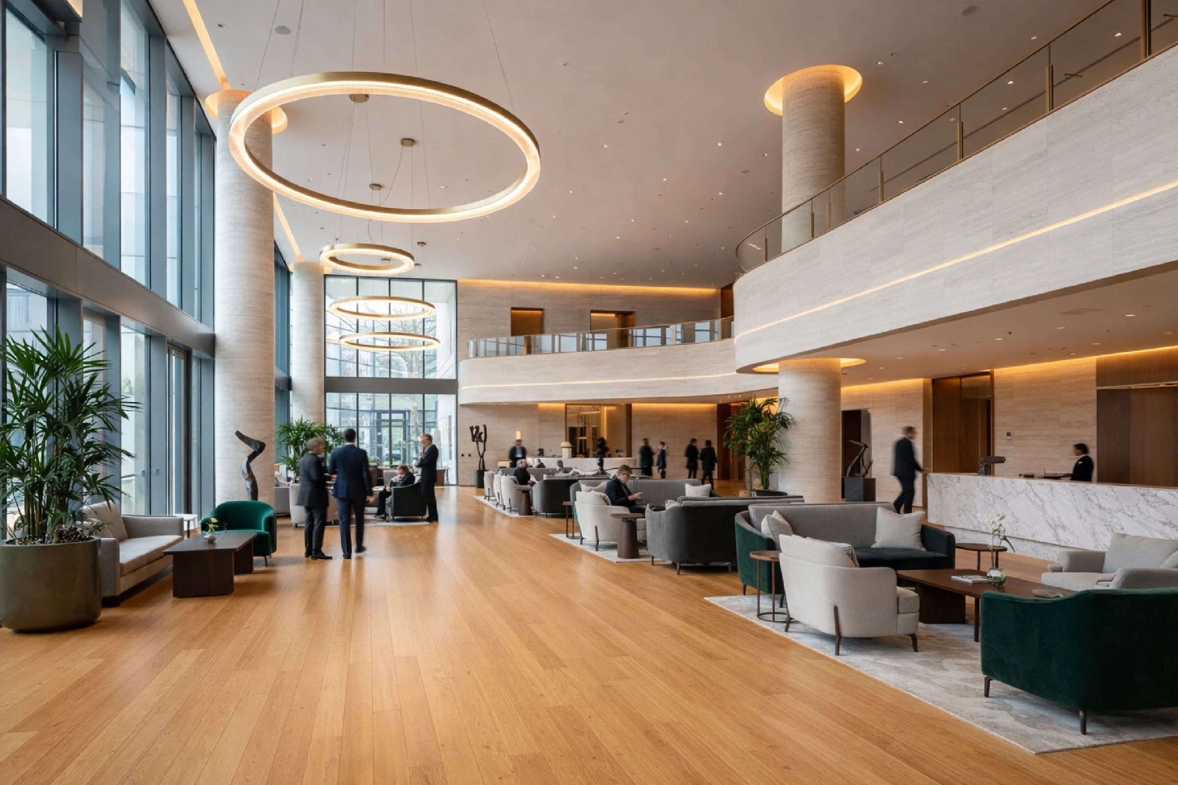 - Bamboo engineered hardwood flooring delivers a smooth, modern bamboo finish across hotel interiors.
