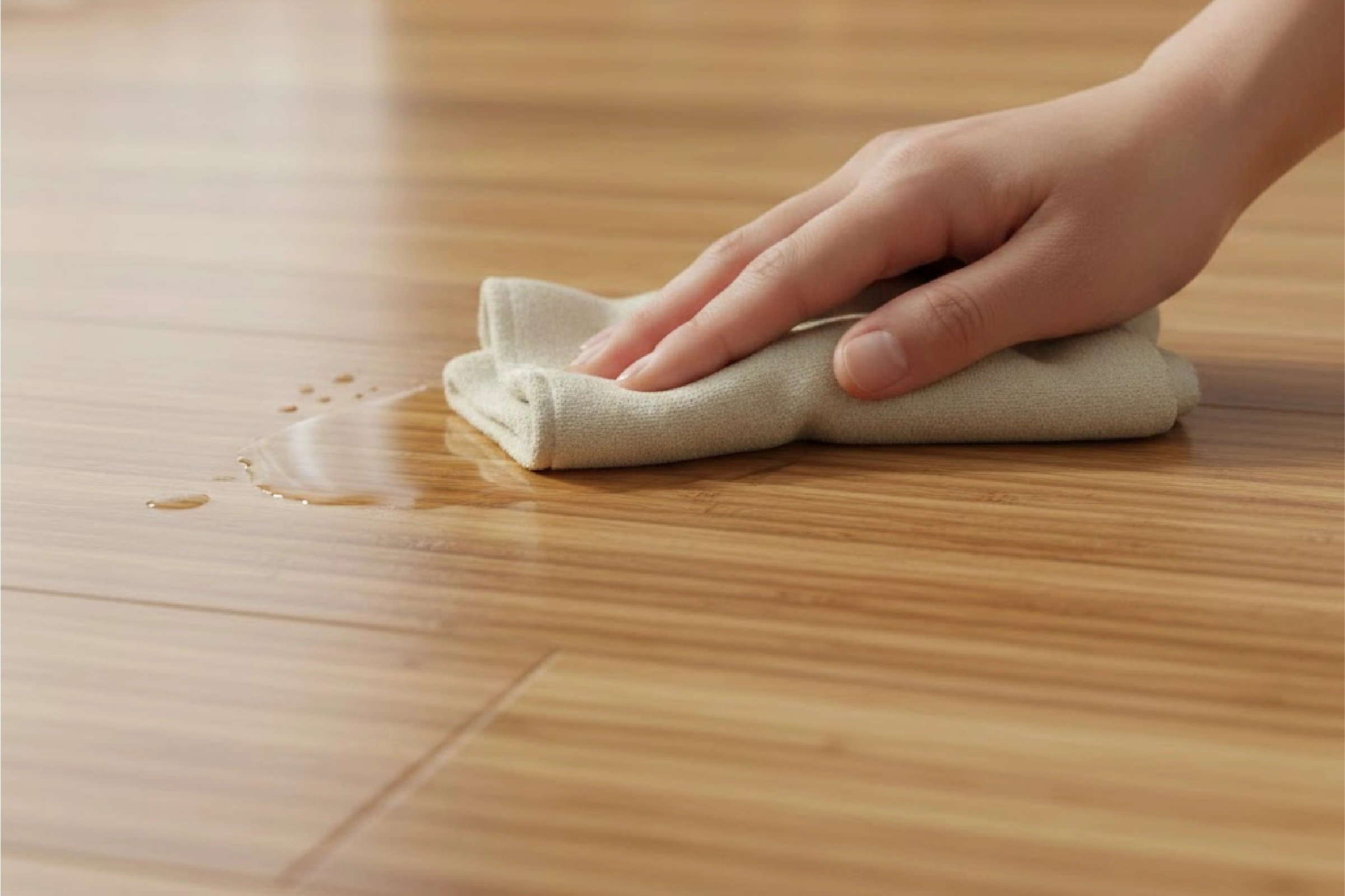 - Stable bamboo veneer remains composed through repeated cleaning cycles.