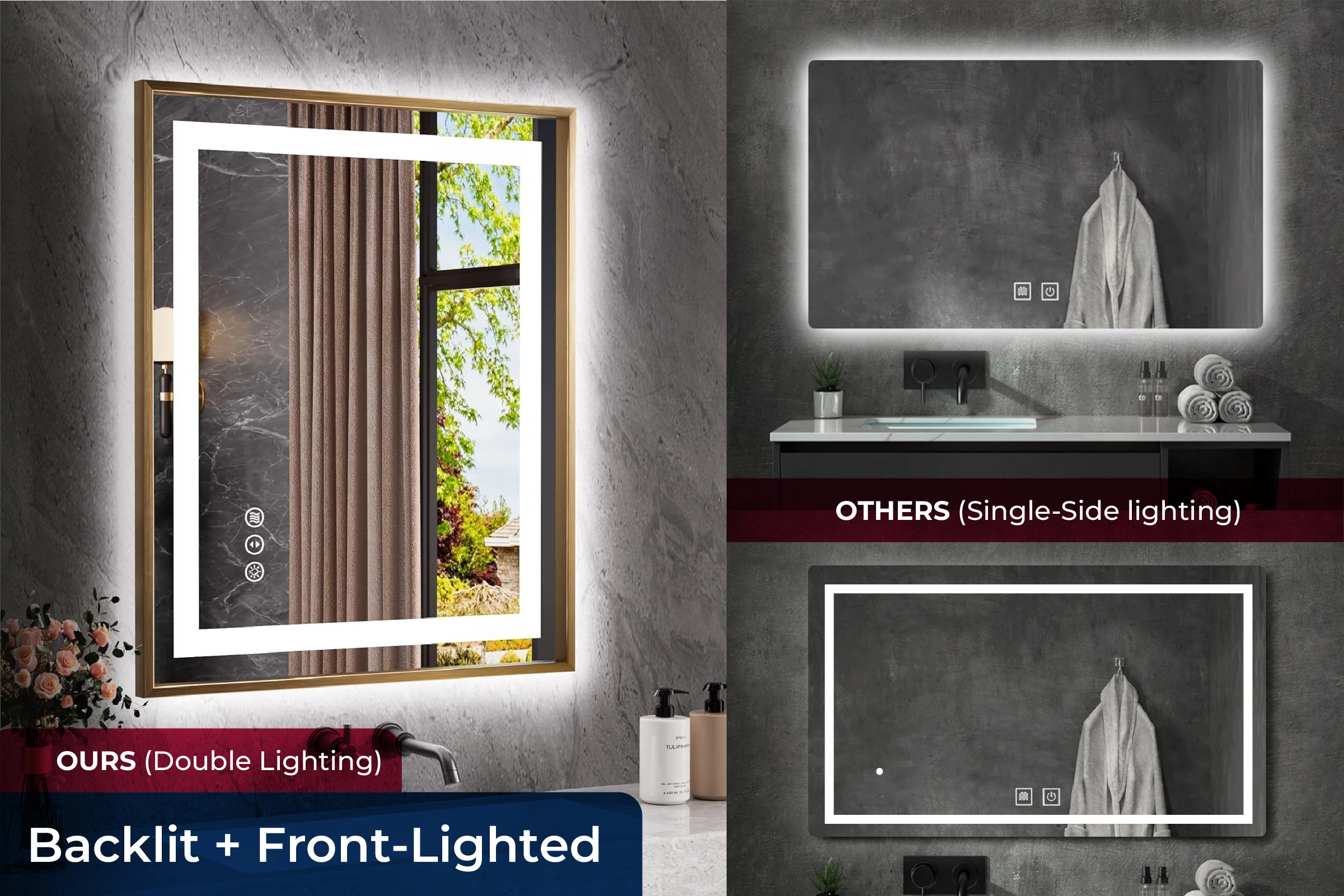 - Ideal for bathrooms, using a defogger mirror with light for daily convenience.