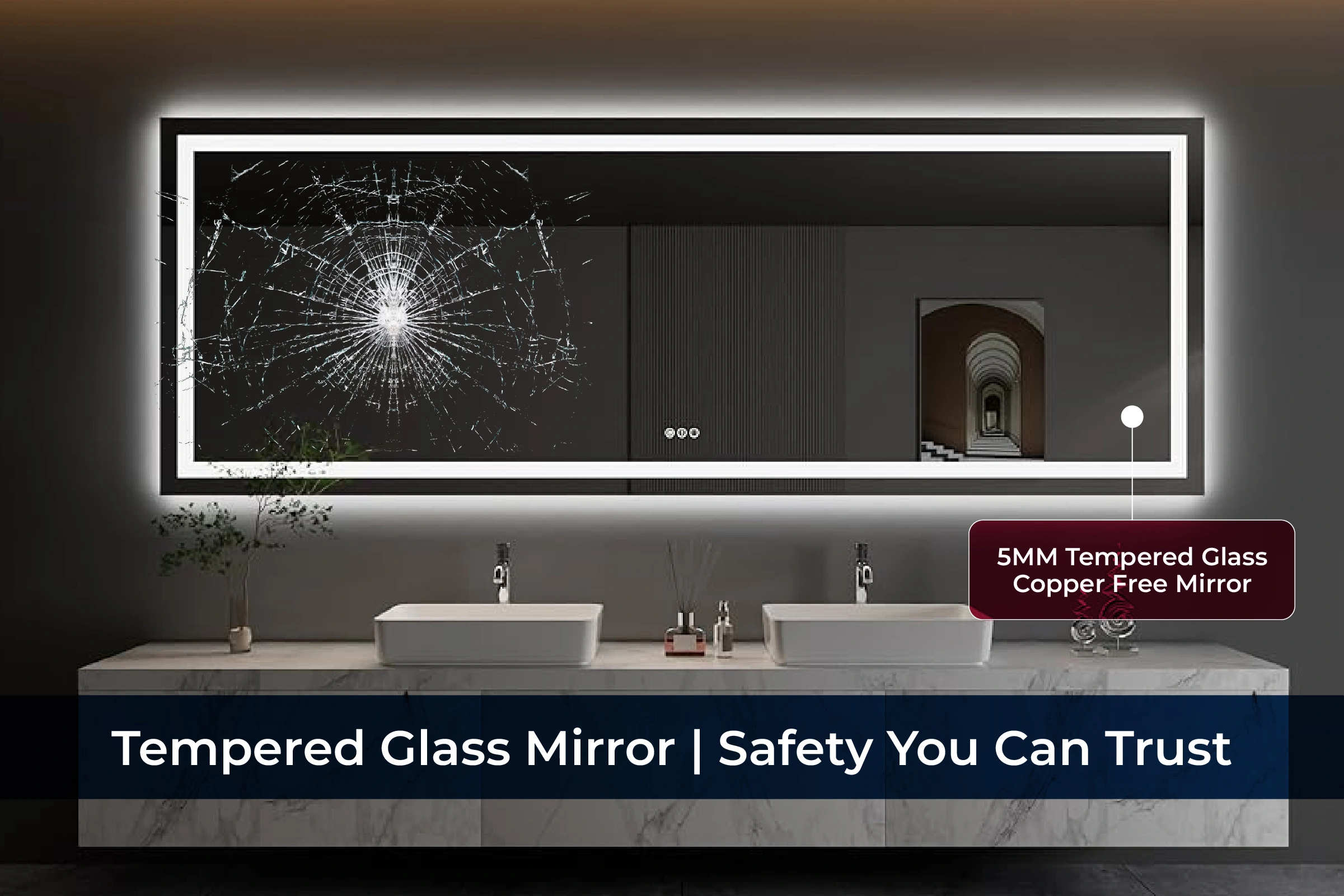 - Mirror components are designed to withstand moisture, daily usage, and frequent lighting cycles.