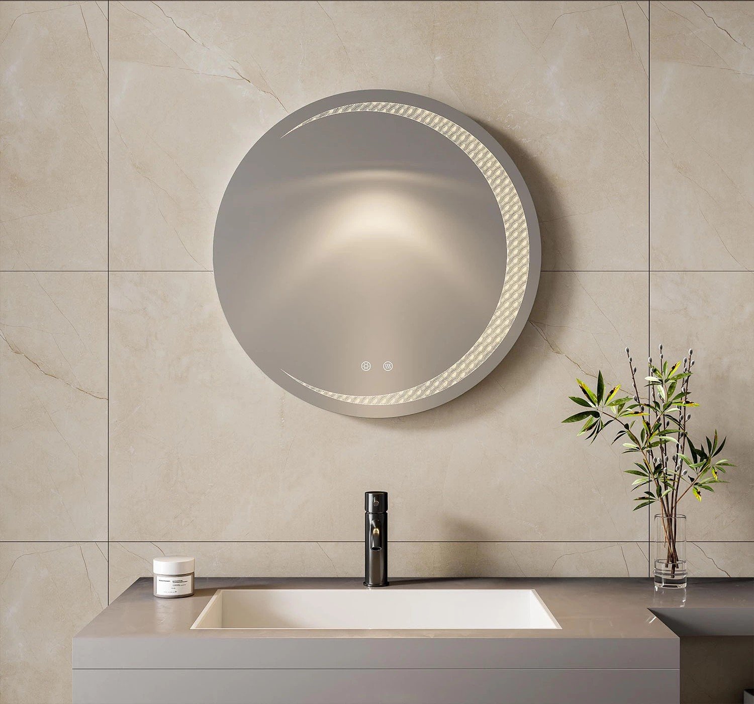 United Round LED Bathroom Mirror – Front & Back Lit, Dimmable, Inbuilt Defogger, 3-in-1 CCT, Shatter-Resistant, Touch Sensor