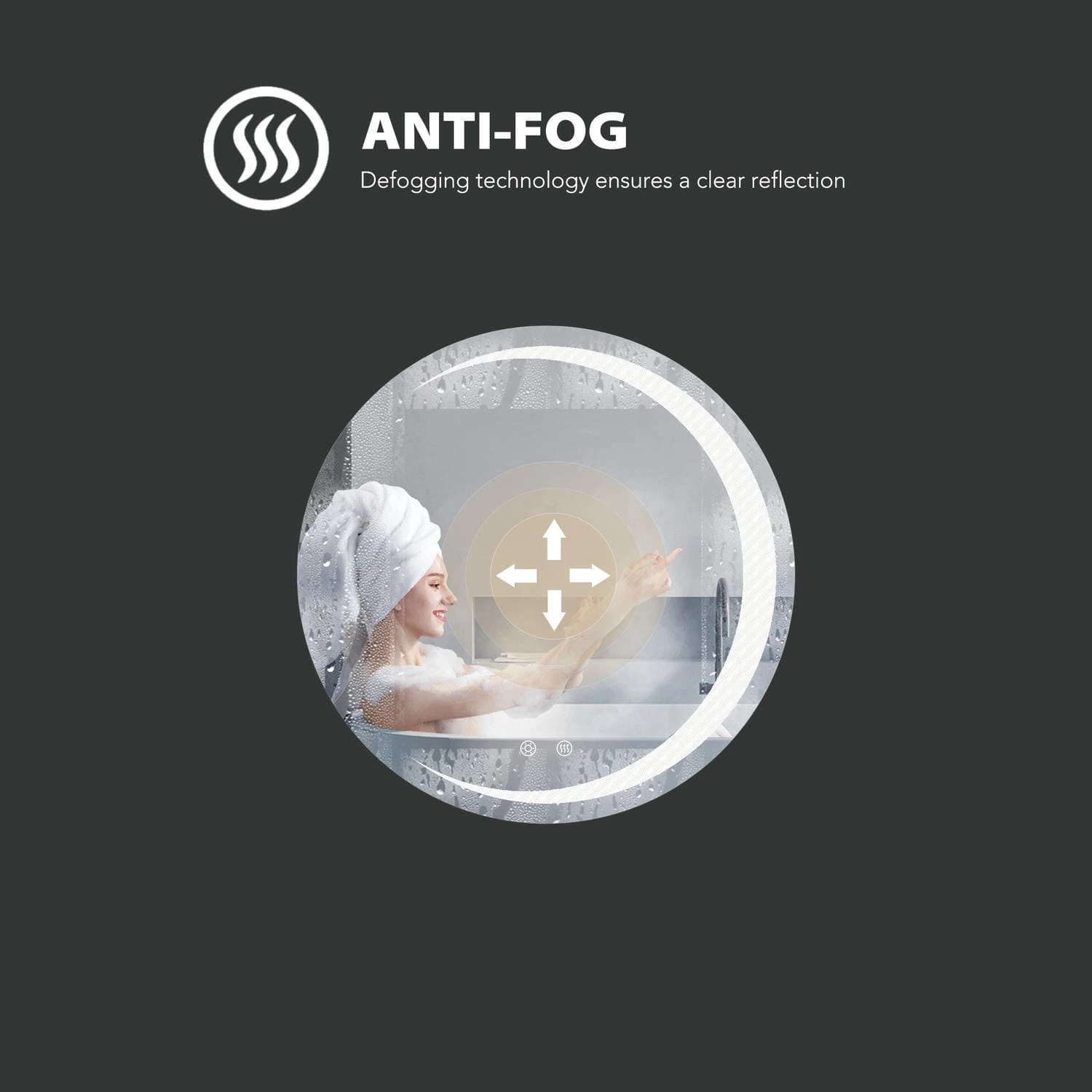 - Anti-fog technology keeps the mirror clear during high humidity and post-shower conditions.