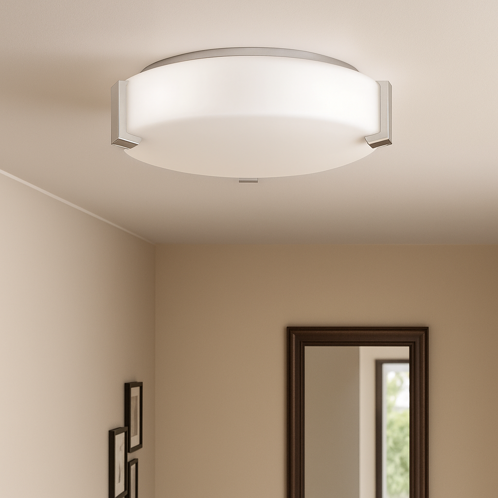 12″W Satin Nickel Ceiling Light with Frosted Acrylic Shade