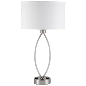 Enhance your workspace with this 24.25-inch high two-light desk lamp, designed to combine modern style with practical functionality. Featuring a sleek brushed nickel finish, it adds a clean, contemporary touch to any desk or tabletop. The dual-light design delivers bright, balanced illumination for reading, writing, or focused tasks. Equipped with two built-in convenience outlets, this lamp allows you to easily power or charge your devices while keeping your workspace organized. Ideal for home offices, study areas, or professional workspaces, this desk lamp offers both comfort and convenience.