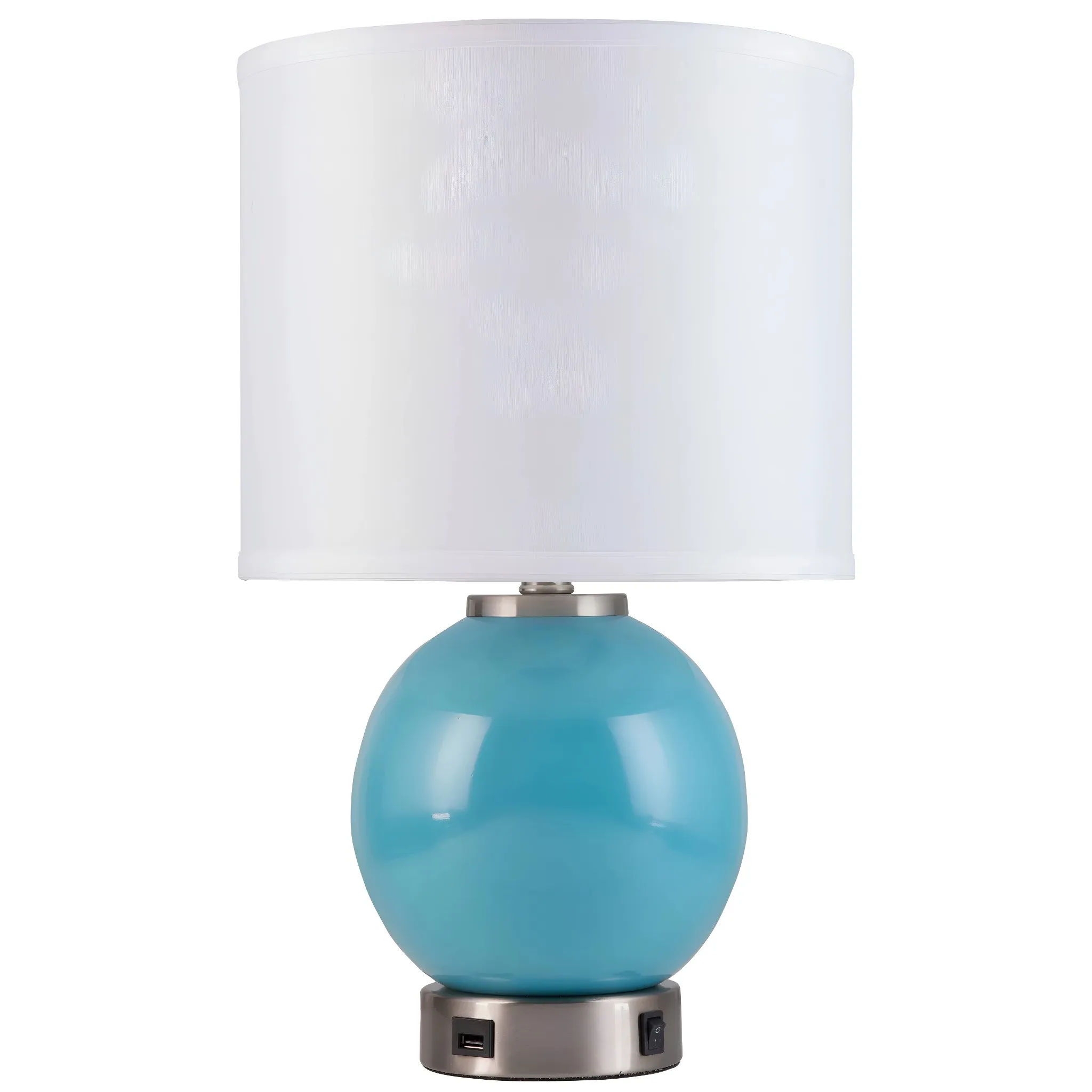 Bring color, style, and modern convenience to your space with this 21-inch high table lamp. Featuring a vibrant blue body paired with a sleek brushed nickel base, this lamp adds a fresh, contemporary accent to bedrooms, living rooms, offices, or dorm rooms.