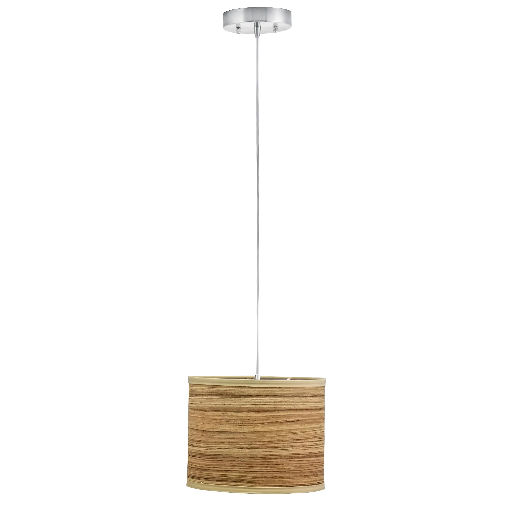 This 10-inch wide drum pendant light features a distinctive zebrawood finish that adds warmth and natural character to your space. Accented with a sleek satin nickel finish, the design blends organic texture with modern elegance. The drum shade provides soft, evenly diffused illumination, making it ideal for kitchens, dining areas, or entryways. Stylish and versatile, this pendant light complements both contemporary and transitional interiors while creating a welcoming ambiance.