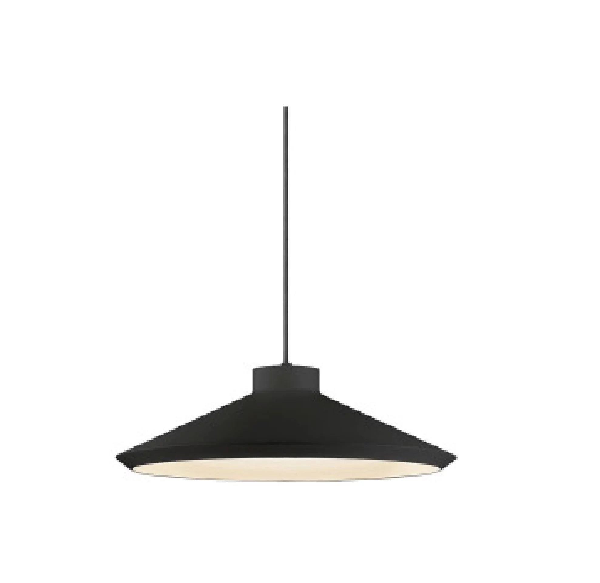 20″W hanging ceiling pendant with black finish with white interior, metal shade and adjustable cord