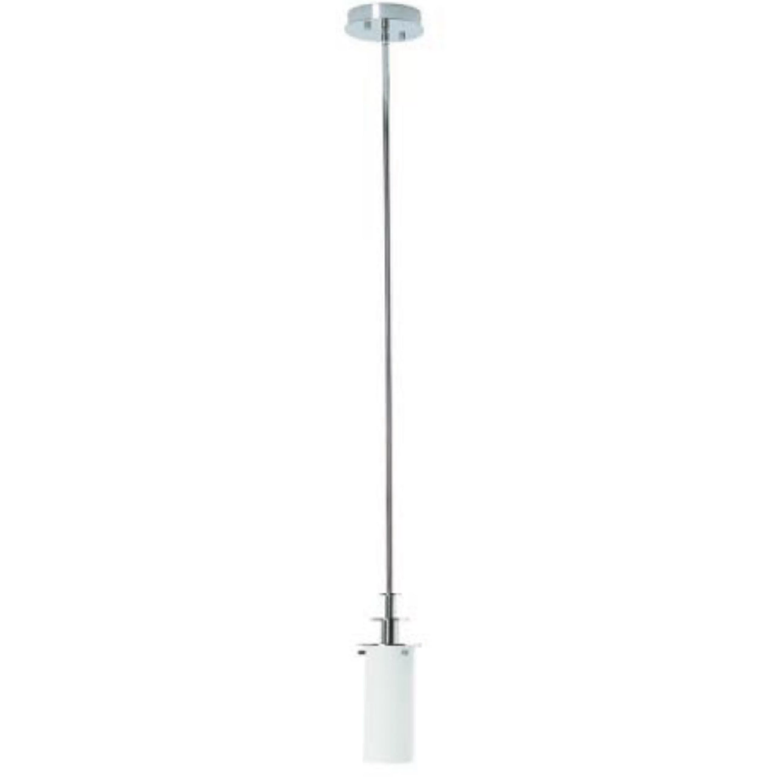 Add a sleek, modern accent to your space with this 5-inch diameter pendant light. Featuring a polished chrome finish, it brings a contemporary shine that complements modern and minimalist interiors. The frosted glass shade softly diffuses light, creating a warm, glare-free glow while enhancing the overall ambiance.