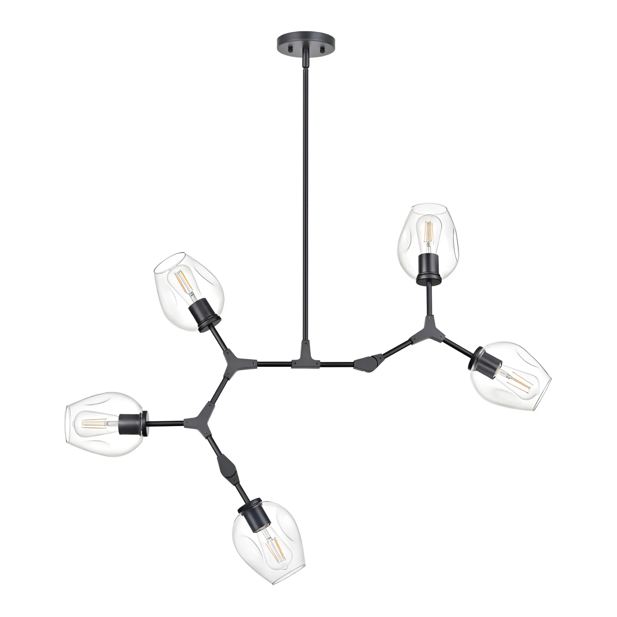 Bring sculptural elegance and modern sophistication to your space with this striking branch-style pendant light. Spanning 40 inches wide, the fixture features five gracefully extended arms inspired by natural branches, creating a dynamic and balanced silhouette. Each arm is topped with a clear glass shade that showcases the bulbs while allowing light to disperse freely for bright, ambient illumination.
