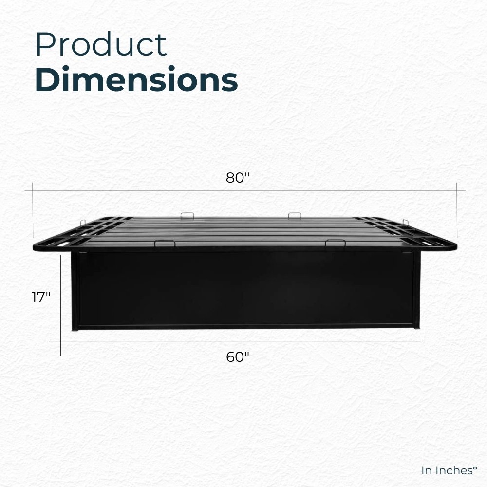 With a generous 17-inch height, you’ll enjoy ample under-bed storage space for bins, luggage, or seasonal items, helping you keep your bedroom clutter-free. The noise-free design includes reinforced edges and non-slip support to keep your mattress securely in place for a peaceful night’s sleep.