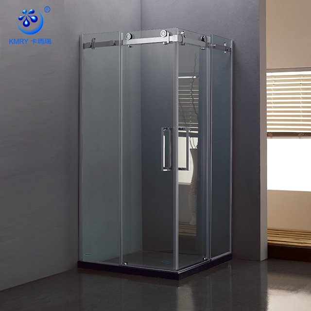 KMRY High Quality Frameless Square Sliding Shower Enclosure Tempered Glass Artificial Stone Tray Hotel Use Shower Door