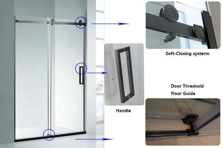 Foshan KMRY Custom Size Adjustable Track Glass Bathroom Screens Frameless Sliding Shower Door for Hotel Use