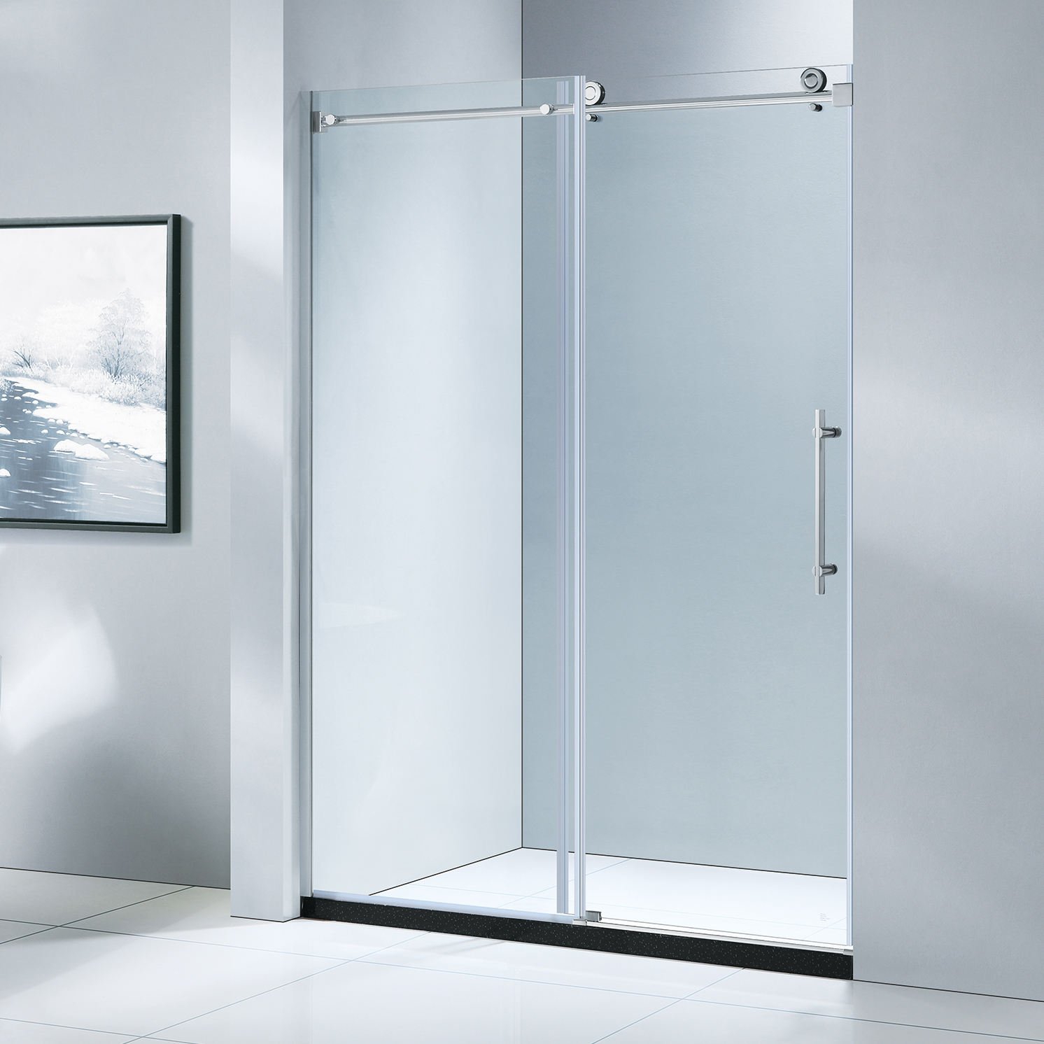 The KMRY Single Sliding Bathroom Entry Door is designed to deliver a clean, modern look with reliable performance for hotel and residential bathrooms. Made from high-quality tempered safety glass, this frameless door ensures enhanced durability, strength, and everyday safety.