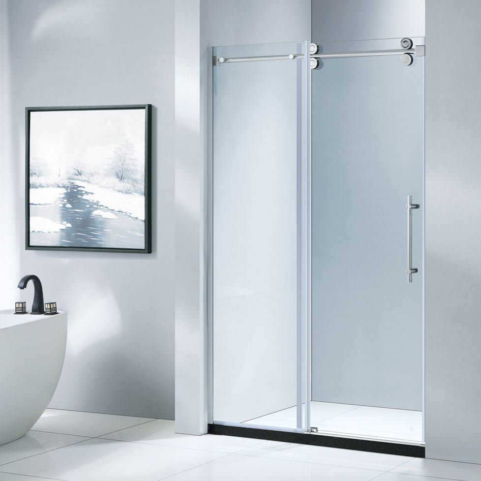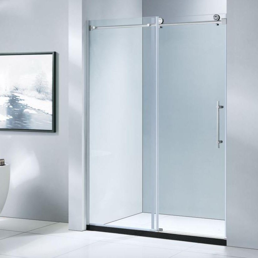 KMRY Single Sliding Bathroom Entry Doors Frameless Tempered Glass with Clear Frame Rectangle Shape for Hotels