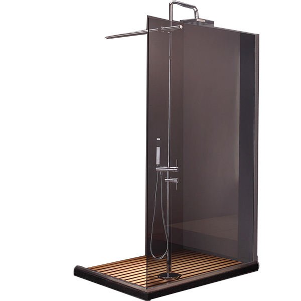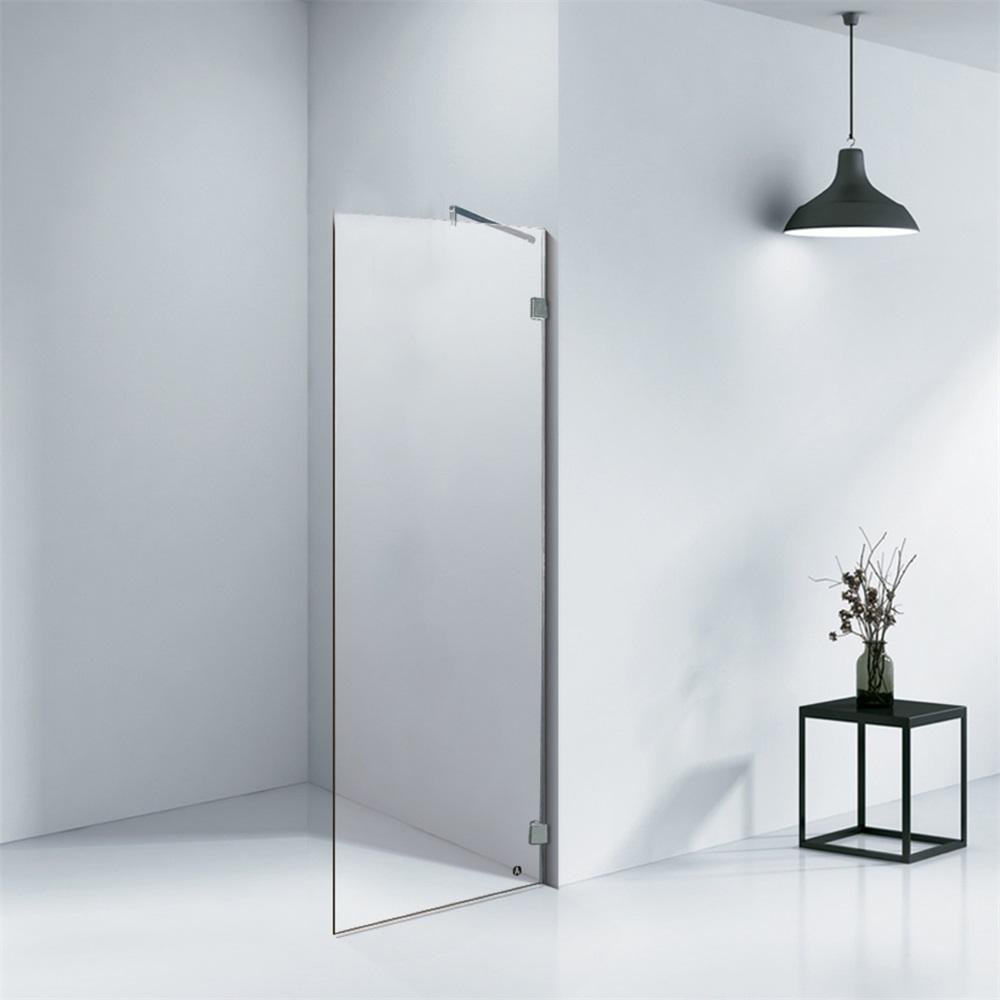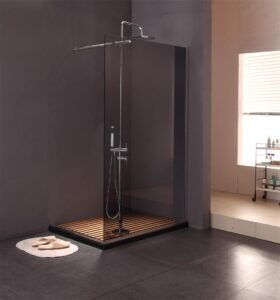 KMRY Conrner Wooden Tray Walk in Bathroom Panel Glass Frameless Contemporary Rectangle Straight Glass Shower Screen