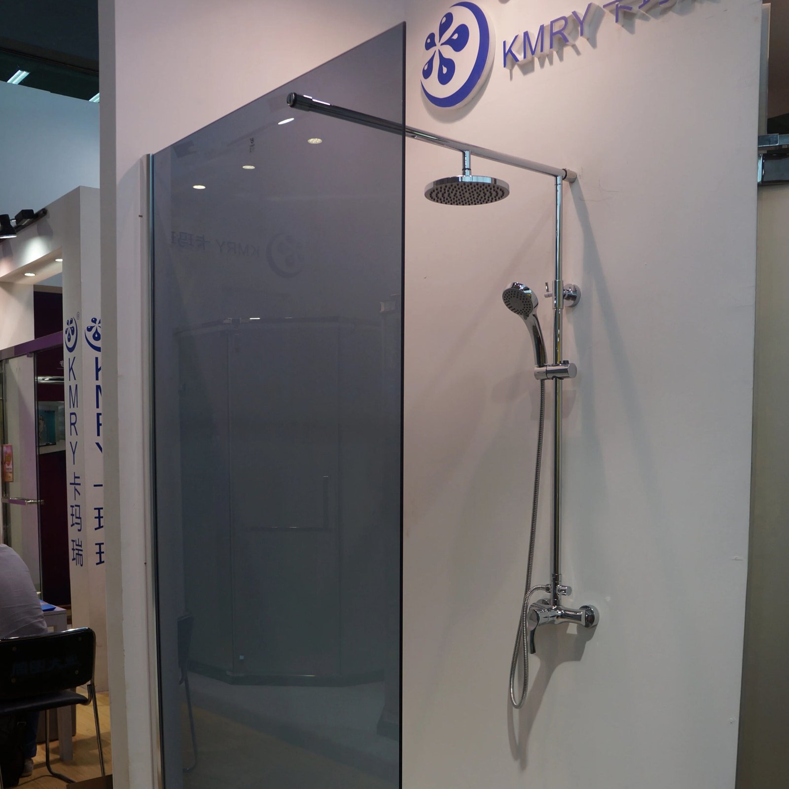 Fixed walk-in shower panel for easy access