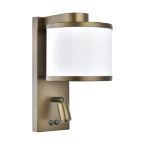 13″H Plug In Dark Bronze Sconce with Fabric Shade and LED Reading Light
