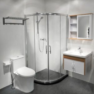 Modern Sliding Complete Modular Prefab Bathroom Unit All-in-One All Glass 6mm Thick with Frame for Hotels
