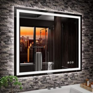 United Borderless Four-Sided LED Mirror – Front & Back Lit, Dimmable, Inbuilt Defogger, 3-in-1 CCT Lighting – 30″W × 36″H