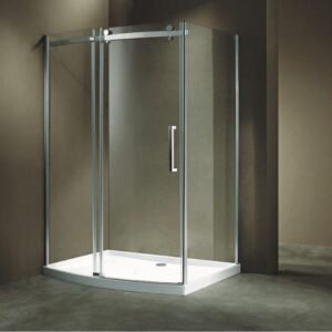 KMRY High Quality Frameless Square Sliding Shower Enclosure Tempered Glass Artificial Stone Tray Hotel Use Shower Door