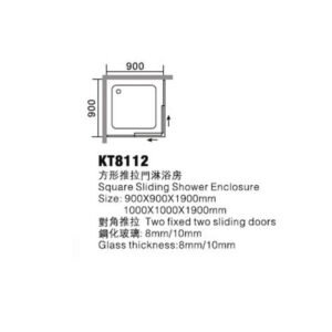 KT8115 Frameless Sliding Enclosed Shower Room 800X1200 Rectangular Stainless Steel Shower Stall for Hotels
