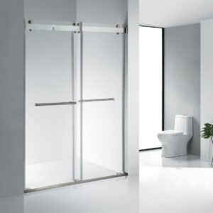 KMRY Customized Thick Tempered Glass Soft Close Double Sliding Shower Door 72″ Frameless Shower Screen Modern Design for Hotels